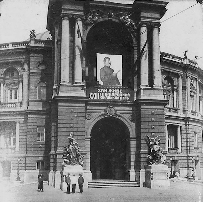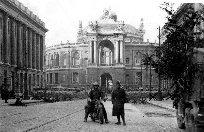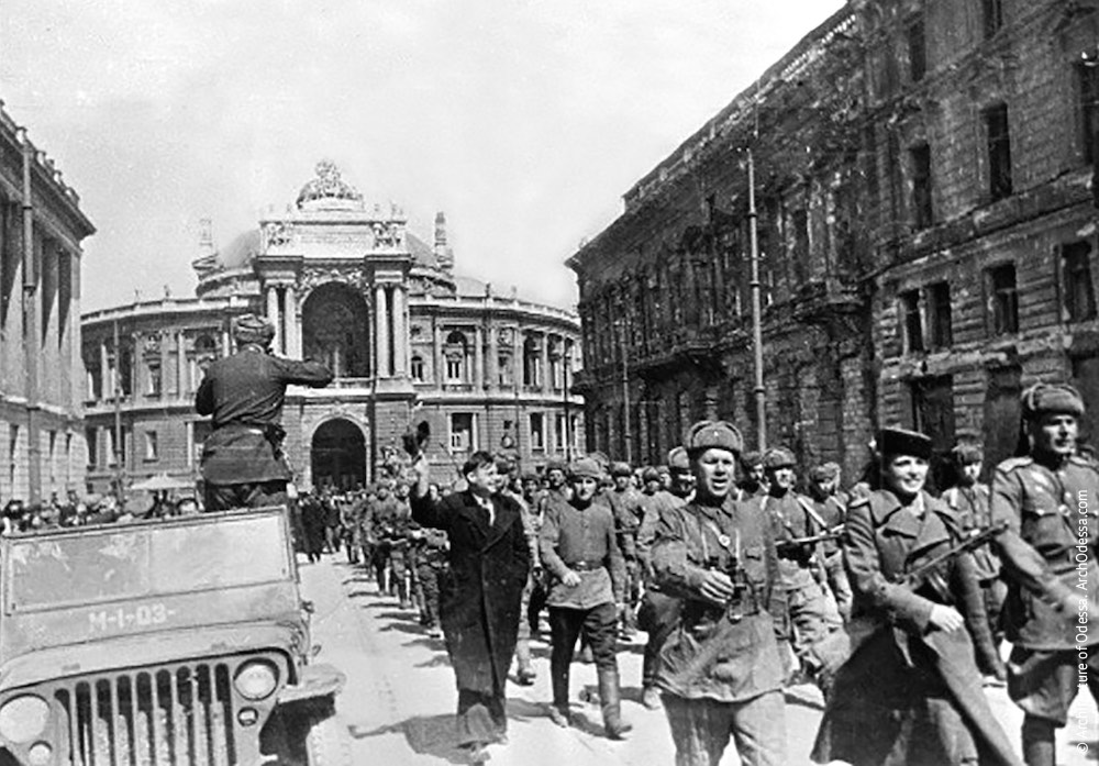 В 1944 году театр чудом уцелел: фашисты планировали взорвать его при отступлении. Но 10 апреля на балконе здания был вывешен советский флаг – в знак освобождения Одессы от гитлеровских захватчиков. Именно отсюда, от здания театра, прошли победным маршем через весь город советские солдаты, освободившие Одессу.