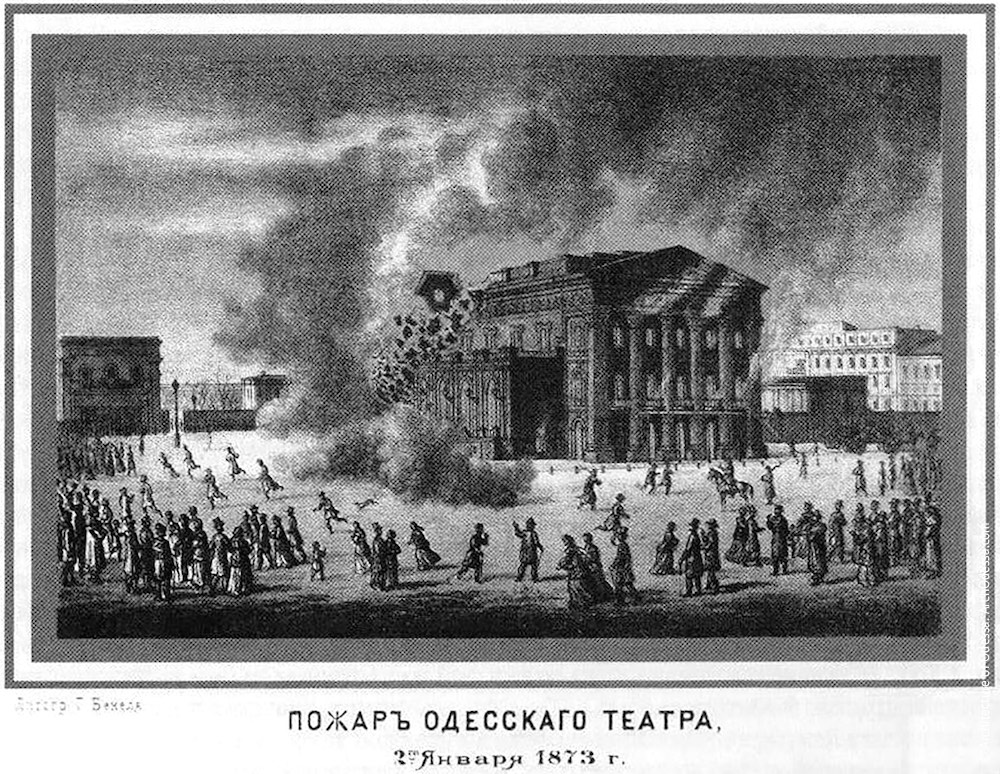 В 1873 году, через 64 года после открытия, Городской театр был полностью уничтожен пожаром. «Картина вырвавшегося наружу и бушевавшего на свободе пламени была поистине грандиозной. Колонны катились по площади, как бы в погоне за публикой, пришедшей посмотреть на пожар», – писал автор книги «Старая Одесса» Александр Дерибас. От Городского театра остался только пепел.
