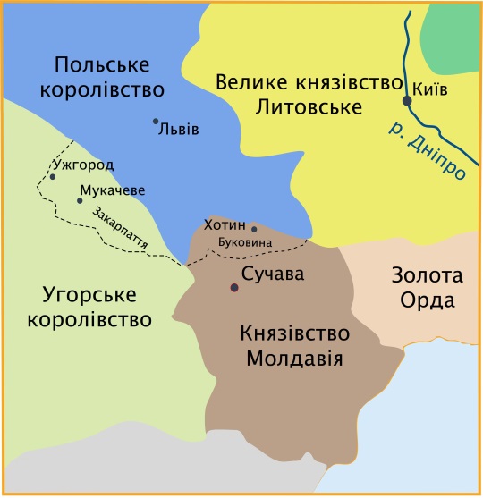 В конце XIV века хан Тохтамыш специальным ярлыком формально отменил режим подчинённости Орде русских земель, находившихся под властью великого князя Витовта. Витовт развивал систему оборонительных укреплений на юге украинских земель (в Брацлаве, Черкассах и других городах), строил крепости в южных степях (Днестровский лиман), в 1397—1398 годах совершил два победоносных похода против Золотой Орды. В период княжения Витовта значительно расширилась украинская территориальная колонизация на юг и восток, вплоть до Чёрного моря.