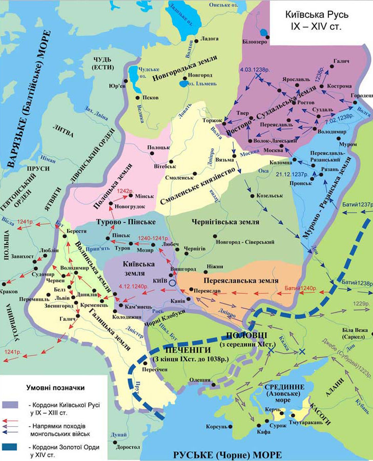 После смерти Мстислава, старшего сына Владимира Мономаха, в 1132 году Русь окончательно потеряла свою единство. К середине XII века на территории единого государства сформировалось около 15 крупных уделов, каждый из которых вел по сути самостоятельную политическую жизнь, лишь номинально признавая старшинство великого киевского князя. На территории современной Украины это были: Киевское, Черниговское, Переяславское, Волынское и Галицкое княжества. В более поздних летописях этот период (1187 год) считается временем первого упоминания топонима «Украина». Начался активный процесс борьбы за власть. По подсчетам Степана Томашевского, в Киеве с 1146 по 1246 год правители сменялись 47 раз; возвращаясь на престол по несколько раз, здесь правили 24 князя, причём 35 княжений длилось менее года. Основными силами противостояния на украинских землях стали русские семьи — северские Ольговичи, волынские Мстиславичи, галичские Ростиславичи, а также половецкие роды — донецкие Ольберлюевы, приазовские Тертровичи и приднепровские Каевичи.
