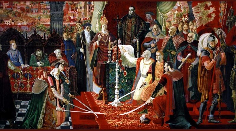 После его смерти Польша и Литва заключили Кревскую унию (1385), а князь Ягайло, женившись на дочери Людовика I Великого — Ядвиге, принял католичество и под именем короля Владислава II Ягайло (1362—1434) правил Польшей и Великим княжеством Литовским, положив начало династии Ягеллонов. Под его руководством в июле 1410 года польско-литовская армия при поддержке отрядов из Руси и Чехии нанесла сокрушительное поражение войскам Тевтонского ордена, выступавшим в союзе с правителями 12 стран Европы, в битве при Грюнвальде. Это поражение и последующая Тринадцатилетняя война окончательно сломили позиции ордена и позволили присоединить к Польше Восточное Поморье, часть Пруссии и выйти к Балтийскому морю. Владислав II Ягайло и его преемники продолжали борьбу с немцами на западе, но одновременно уделяли все больше внимания востоку. В XV веке поляки участвовали в отражении турецких завоевателей, а Ягеллоны занимали престолы Чехии и Венгрии. Внутри страны короли предоставляли все новые привилегии шляхте — в том числе Нешавский привилей 1454 года короля Казимира IV Ягеллончика, фактически подчинивший королей шляхте. В XV веке сформировалась сословно-представительная монархия. В 1505 году король Александр ввел сборник законов — Радомскую конституцию (Nihil Novi), которая ограничивала королевскую власть в пользу магнатов и шляхты и запрещала королям вводить какие-либо изменения в государстве без согласия вального сейма.